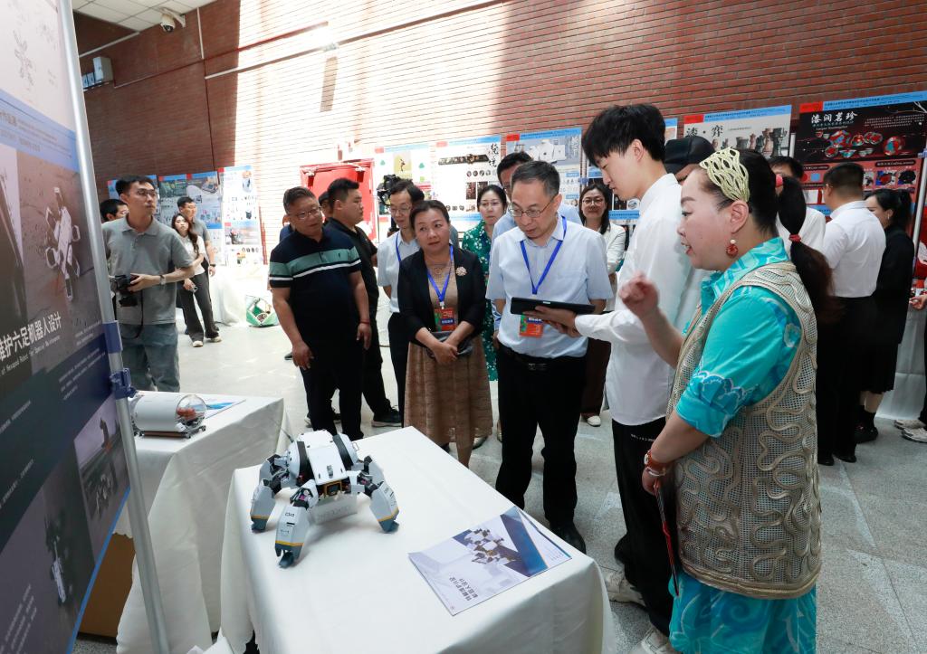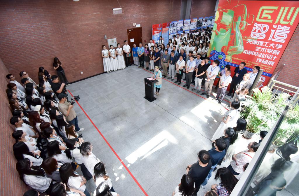 6月3日,藝術(shù)學(xué)院2025屆本科畢業(yè)設(shè)計(jì)作品展在學(xué)校圖書(shū)館舉行。天津市鴕鳥(niǎo)墨水有限公司總經(jīng)理黃強(qiáng),天津市臻寶堂文化有限公司研發(fā)部總監(jiān)、天津市工藝美術(shù)大師趙陽(yáng),天津天紡?fù)顿Y控股有限公司副總經(jīng)理、天津抵羊智造有限公司董事長(zhǎng)李華慶,天津大學(xué)設(shè)計(jì)總院文旅產(chǎn)業(yè)研究院副院長(zhǎng)何知秋,天津芒狗動(dòng)畫(huà)科技有限公司副總經(jīng)理寇偉,黨委常委、副校長(zhǎng)葉寧出席開(kāi)幕式。相關(guān)處室負(fù)責(zé)同志及藝術(shù)學(xué)院師生代表參加了開(kāi)幕式。