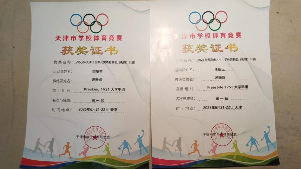 近日,2025年天津市大中小學(xué)體育舞蹈(街舞)比賽開賽。經(jīng)過多輪激烈角逐,我校機(jī)械工程學(xué)院機(jī)械電子工程專業(yè)3班李庚玉一舉奪得freestyle1VS1大學(xué)甲組和breaking1VS1大學(xué)甲組兩項冠軍;語言文化學(xué)院2024級漢語言文學(xué)3班鄭梓萱在甲組大學(xué)生單人單項——華爾茲、單人單項——維也納華爾茲項目中榮獲第一名;藝術(shù)學(xué)院2023級環(huán)境設(shè)計專業(yè)1班王易、管理學(xué)院2024級工商管理1班江子怡、機(jī)械學(xué)院2024級能源與動力工程2班秦文娜分別在甲組大學(xué)生單人單項——桑巴、單人單項——恰恰和單人C組拉丁項目中榮獲第二名;王易、秦文娜分別在甲組大學(xué)生單人單項——倫巴、單人單項——探戈中榮獲第三名。