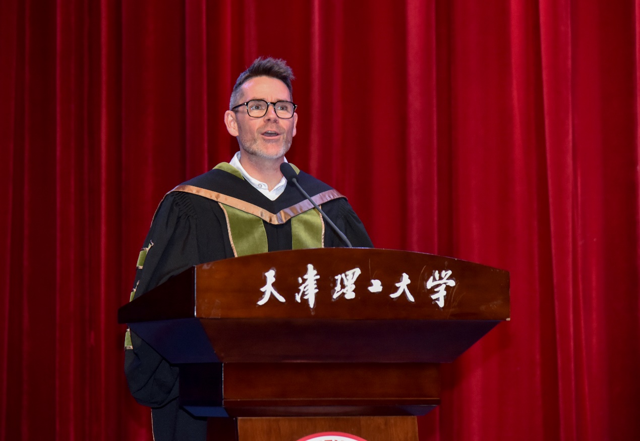 練繼建在講話中指出,我校與國際伙伴院校精誠合作,以優質的教育資源與國際化視野,培養了一批又一批德才兼備、融貫中西的優秀人才。他對畢業生提出三點殷切期望:一要胸懷家國、志存高遠,以青春之我鑄就時代華章;二要架設橋梁、傳播文化,在跨文化互學互鑒中成為“知行合一”的踐行者;三要砥礪奮進、永不言棄,秉承“重德重能 求實求新”的校訓,以“千磨萬擊還堅勁”的韌性面對挑戰,以“會當凌絕頂”的志向勇攀高峰。