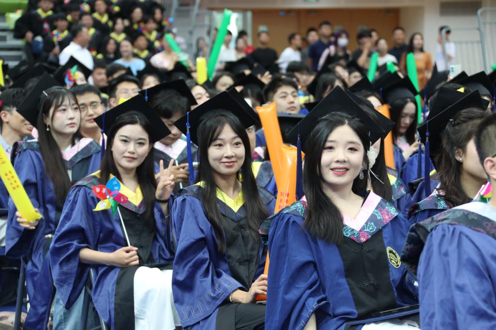 6月19日,學校2025年學生畢業典禮暨學位授予儀式在體育館舉行。校領導練繼建、陳勝勇、王鐵、馮驊以及相關部門、各學院主要負責同志出席,并為獲得學位的畢業生撥正流蘇。畢業典禮由黨委常委、副校長葉寧主持。學校2025屆本科生及研究生畢業生、家長代表、校友代表共計4800余人參加了本次活動。