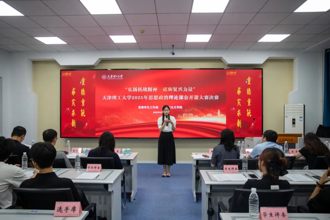 6月27日下午,“弘揚抗戰(zhàn)精神·砥礪復(fù)興力量”學(xué)校2025年思政公開課大賽決賽在智能思政·紅色全景愛國主義教育教室舉辦。天津音樂學(xué)院馬克思主義學(xué)院院長韓璐,天津城建大學(xué)馬克思主義學(xué)院副院長桂錦峰,黨委宣傳部、黨委學(xué)生工作部、校團委主要負責(zé)同志以及15位學(xué)院學(xué)生代表擔(dān)任評委。馬克思主義學(xué)院全體學(xué)生觀摩比賽。
