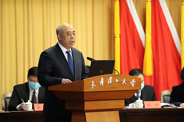 劉東志要求,要深化綜合改革,全面推動學校治理體系和治理能力現代化。堅持依法治校,加快構建現代大學制度建設;落實“以師生為中心”發展理念,著力提升師生幸福感和滿意度;堅持緊緊依靠教職工辦學,全面推進民主法治建設,在落實立德樹人根本任務、推動學校高水平建設、服務國家和天津市地方經濟發展等方面作出更大貢獻。