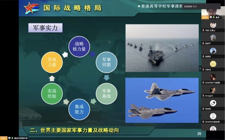 據悉,《軍事理論》教學團隊將進一步鞏固線上授課教研成果,繼續探索疫情期間將課程思政與實踐教學相結合的方法,通過布置學習論文、實踐報告的方式,活化軍事課教學效果。緊密圍繞立德樹人的根本任務,讓軍事課體現出應有的政治特色、學科特點、思政內涵。