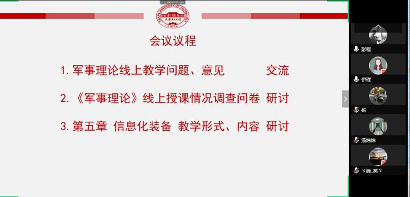 為貫徹落實本科教育大會精神,提升教育教學質量水平,確保疫情期間“停課不停學,學習不延期”,我校《軍事理論》課教學團隊自2月17日正式啟動線上教學,并于3月15日開展了為期2周的線上教研工作。通過分組精備精講、導師跟蹤聽課、發放電子問卷、問題交流研討等環節,確保課程質量和教學效果。