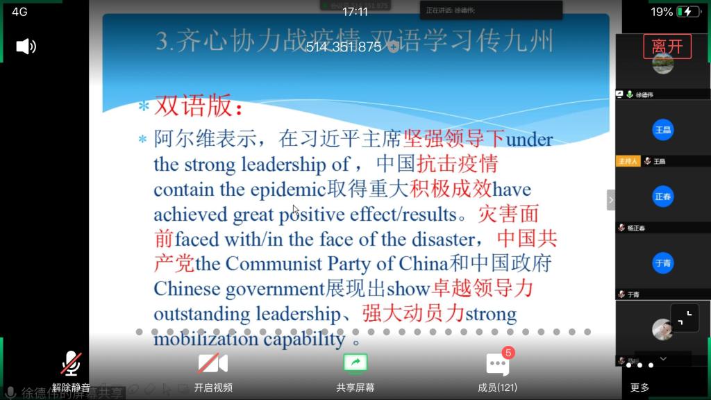 語言文化學院教師徐德偉結合時事熱點講授英語詞匯