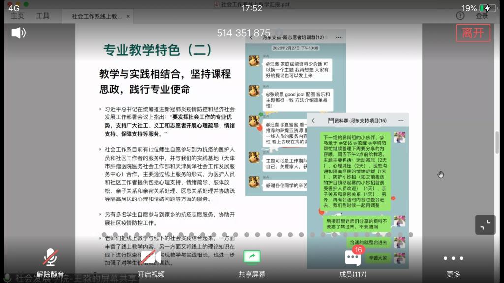 理學院教師茍長義、楊帥介紹了在公共基礎課分級教學背景下,高等數學、大學物理等在線課程的教學情況,以及針對課程需要大量推演等特點,就在線教學所使用的特殊設備及軟件進行了介紹。
