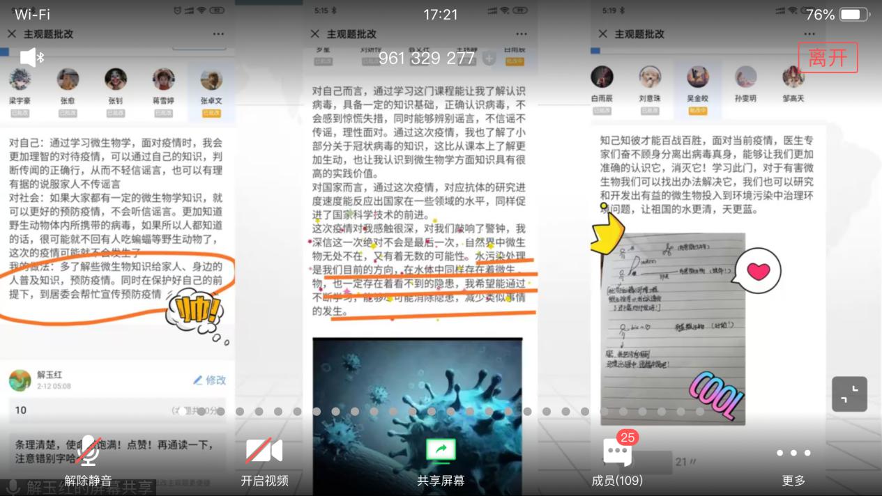 疫情防控期間,教師們結合專業知識開展課程思政建設,對學生進行生命教育。教師田華在《工程材料及其形成前沿》課程中,介紹了本次抗擊疫情中所使用的多種新型材料,增強學生學習興趣,幫助學生建立職業理想。環境科學與安全工程學院教師解玉紅就微生物學學習與疫情防控布置隨堂作業,引發學生熱烈討論。