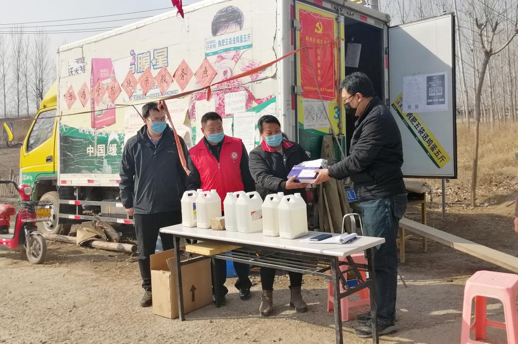 3月11日,幫扶工作組為下窩頭鎮西馬營村、寇各莊村、東趙各莊鎮牛道口村捐助配備了醫用口罩、醫用酒精、手套、消毒液等防疫物資。