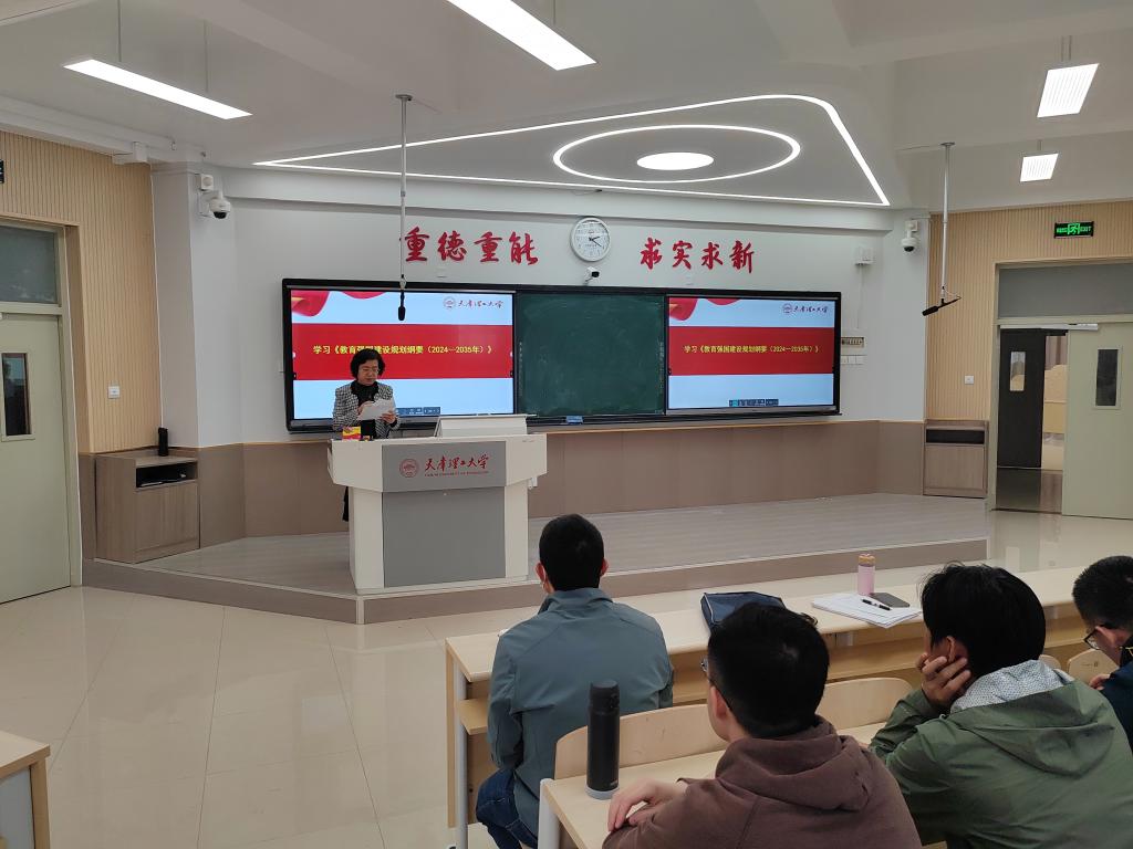 學(xué)院黨政主要負(fù)責(zé)同志領(lǐng)學(xué)全國兩會(huì)精神,深入解讀了《教育強(qiáng)國建設(shè)規(guī)劃綱要(2024—2035年)》中關(guān)于基礎(chǔ)學(xué)科建設(shè)、人才培養(yǎng)模式改革等要求,并結(jié)合當(dāng)前教育形勢(shì)與學(xué)校發(fā)展目標(biāo)提出具體落實(shí)措施。