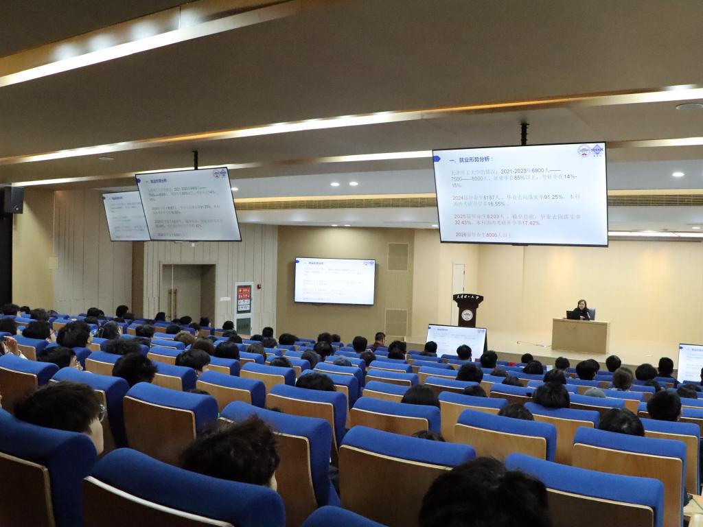 會上,學院黨委主要負責同志結合近年來的就業形勢、學院畢業生就業和考研情況,深度剖析存在的問題,引導全體2026屆畢業生樹立正確的就業觀念,清晰認知自身的學習能力和綜合素質水平,并做出最正確的生涯選擇。