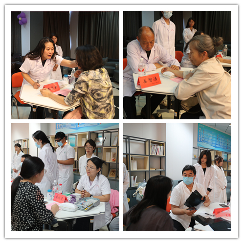 活動現場,來自天津中醫藥大學的王洪武、姜智浩、王秀云、陳澤林、溫景榮、周志煥、吳喜慶、宋瑞雯8位黨外中醫專家帶領學生志愿者,為我校近百位教師提供一對一健康咨詢服務。專家們為大家觀舌、診脈、施針,將專業診療與健康科普相融合,耐心細致地為每一位老師作出診斷檢查并給予專業解答,提供個性化的診療方案、科學用藥指導及日常生活保健規劃。