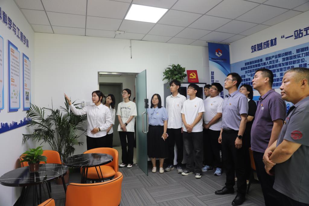 儀式伊始,中心負責人介紹了“知行社區”建設的總體情況。在揭牌環節,與會領導共同為服務中心揭牌,標志著學校首個深度融合材料學科特色的學生社區正式啟用。隨后,與會領導與師生共同參觀紅船輔導員工作室、歷次黨代會長廊、材料微結構之美長廊等區域。