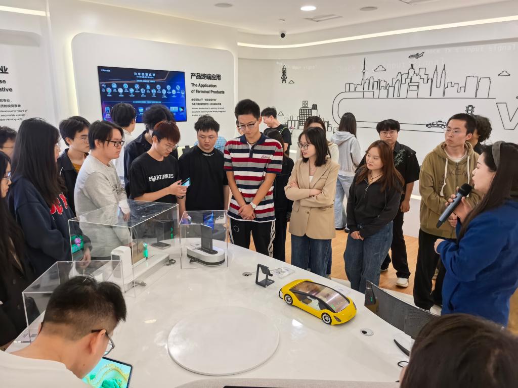 活動(dòng)伊始,學(xué)院師生前往展廳及工藝走廊參觀,觀看了各代顯示屏模組,體驗(yàn)了可彎折手機(jī)屏、透明顯示屏、不規(guī)則顯示屏等樣品。通過講解員的生動(dòng)介紹,大家直觀了解維信諾發(fā)展歷程、核心產(chǎn)品、關(guān)鍵技術(shù)及產(chǎn)線運(yùn)營(yíng)情況。在此過程中,來(lái)訪師生對(duì)OLED工藝原理、生產(chǎn)技術(shù)有了全面的了解。