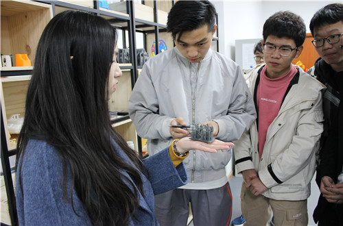 期間,郭亮與企業(yè)負(fù)責(zé)人陪同學(xué)院師生參觀了3D打印量化生產(chǎn)線,介紹3D打印的工藝要求和行業(yè)發(fā)展現(xiàn)狀。隨后,師生現(xiàn)場(chǎng)體驗(yàn)了建模設(shè)計(jì)和機(jī)器操作等主要生產(chǎn)環(huán)節(jié)。雙方通過(guò)深入溝通交流,初步達(dá)成共建校外雙創(chuàng)基地的合作意向。企業(yè)負(fù)責(zé)人表示,在母校的學(xué)習(xí)時(shí)光是人生中最難忘的經(jīng)歷,現(xiàn)在自己愿意為母校的發(fā)展建設(shè)貢獻(xiàn)自己的綿薄之力。