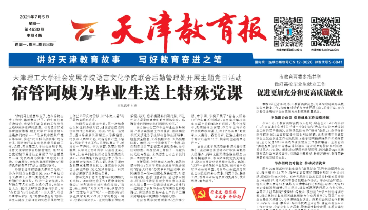 “你們馬上就要畢業了,在今后的生活工作中,都要靠自己了。你們要注意勞逸結合,希望你們在各自的工作崗位上能夠取得更好的成績。也希望你們能夠常回家看看,理工大學27號宿舍樓永遠是你們的家……”為慶祝中國共產黨百年華誕,推進“我為群眾辦實事”走深走實,同時做好畢業生黨員學習教育工作,近日,天津理工大學社會發展學院、語言文化學院聯合后勤管理處,在27號公寓樓輔導員活動室開展了“畢業前最后一課 黨員終身辦實事”主題黨日活動。公寓樓長、老黨員孫麗莎阿姨為“即將遠行的孩子們”送上自己的囑托。