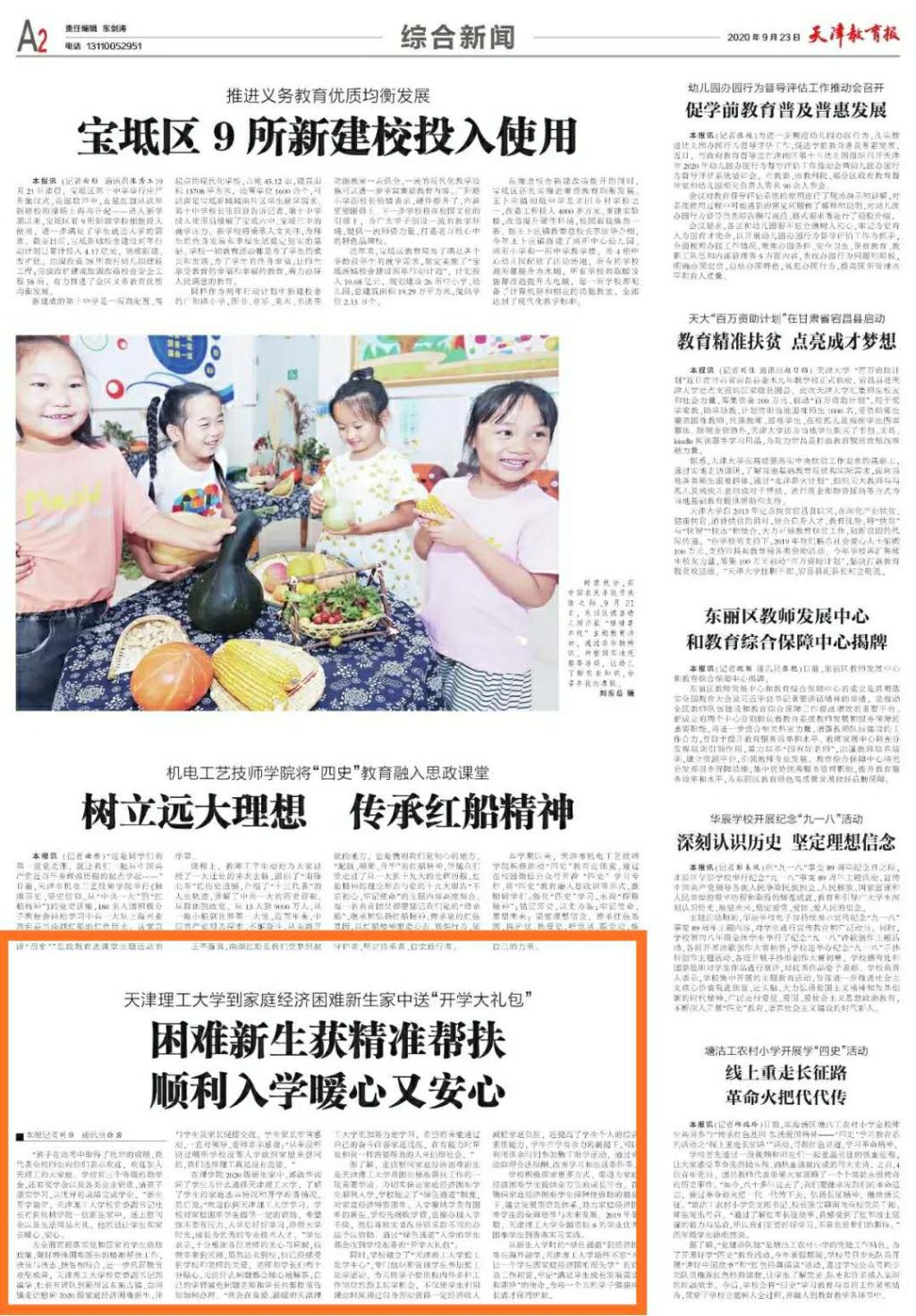 近日,天津教育報對我校困難新生精準幫扶進行了報道,全文如下: